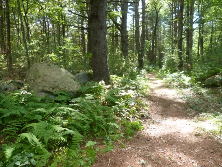 From the intersection of Route 111 (Massachusetts Avenue) and Central Street in Acton, take Central Street south. Go 0.2 mile. Bear right onto Willow Street. Go 1.7 miles. The street name changes to West Acton Road at the town line. Parking is on the right in the Flagg Hill Conservation Area parking lot. Trail access is across the street.