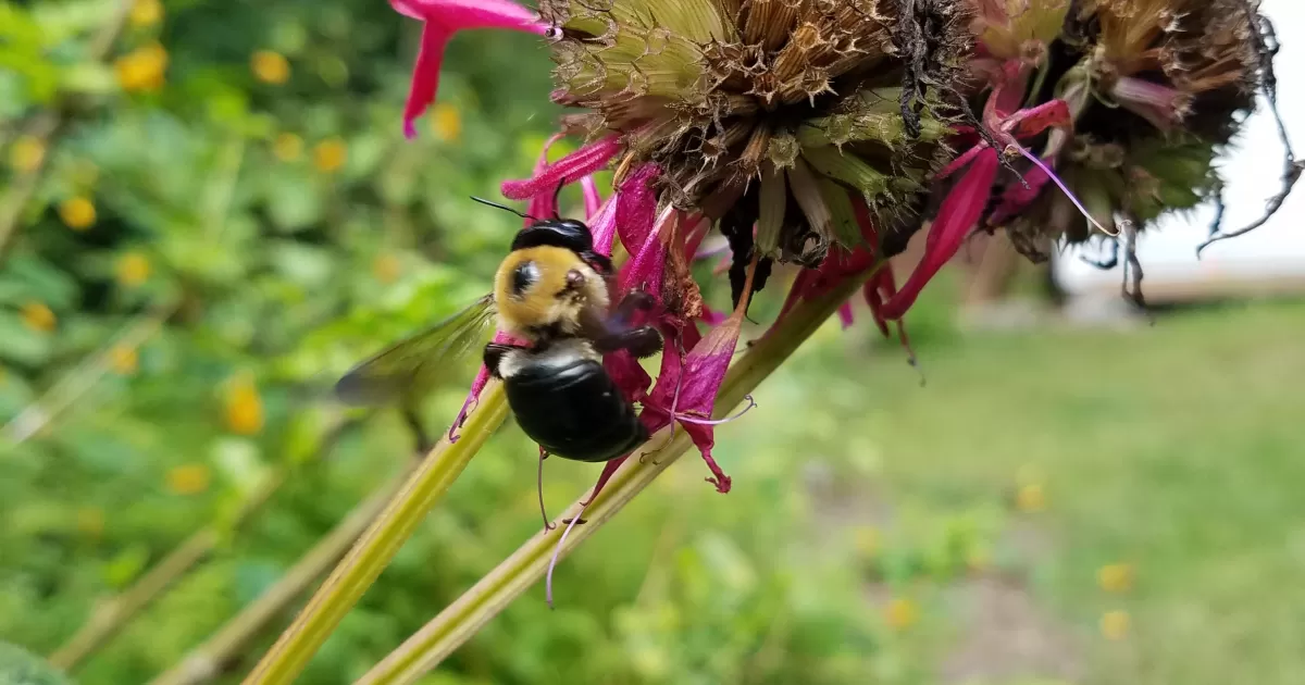 An eastern carpenter bee in Northborough, photographed by Marnie Frankian.