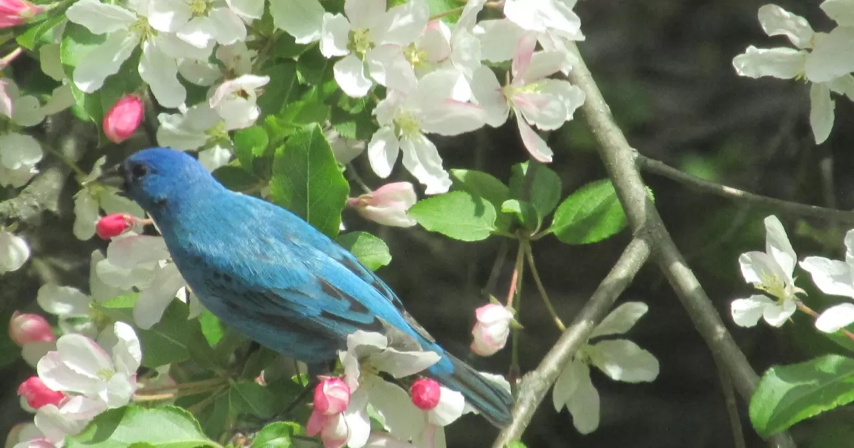 An indigo bunting in Stow, photographed by Laura Reiner.
