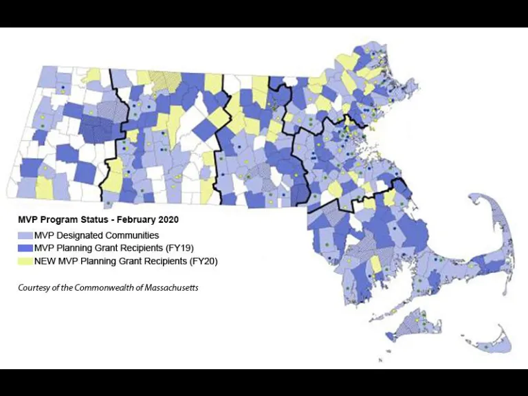 In 2017, Governor Charlie Baker created the MVP program through an Executive Order to encourage Massachusetts cities and towns to take action against climate change. With the 2020 grants, 82% of Massachusetts cities and towns are now enrolled.