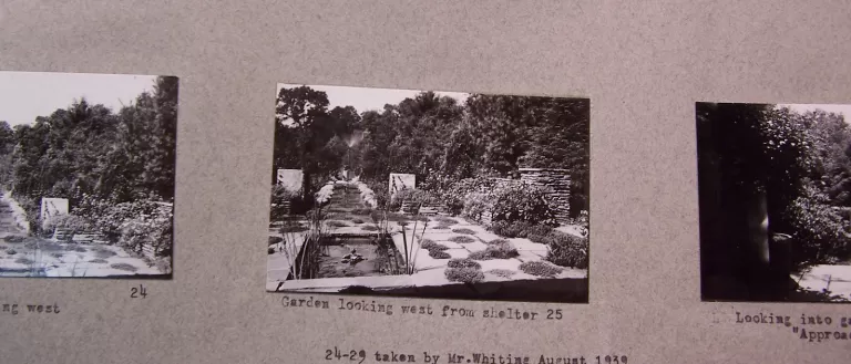 Photos: Wolbach Garden in 1939 and landscape design drawings from the Olmstead Brothers, 1939.