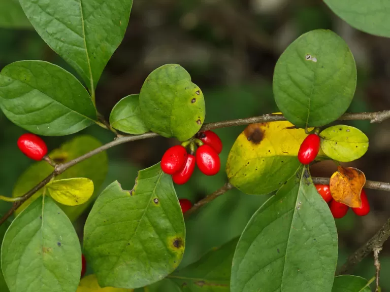 Another shrub that can be found in the red maple swamp and surrounding area is European buckthorn (Rhamnus cathartica), an ornamental shrub that was brought over from Europe. Since its introduction to America, it has become invasive and has a tendency to overrun native understory plants and form dense thickets. Its pervasiveness is aided by its ability to regenerate after cutting or burning.