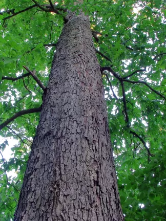 The area you are approaching is a stand of white oak. Two other interesting tree species found in the upland forest on Wolbach Farm are sassafras and butternut.